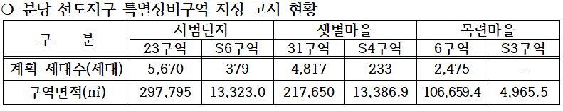 À̹ø¿¡ ÁöÁ¤ °í½ÃµÈ ±¸¿ªÀº ºÐ´ç ¼±µµÁö±¸ 4°÷ ÃÑ 7°³ ±¸¿ª Áß °áÇÕ °³¹ßÀÌ ¿¹Á¤µÈ 3°÷ 6°³ ±¸¿ªÀÌ´Ù. ±¸Ã¼ÀûÀ¸·Î´Â ¡ã½Ã¹ü´ÜÁö(23±¸¿ª-S6±¸¿ª) ¡ã»ûº°¸¶À»(31±¸¿ª-S4±¸¿ª) ¡ã¸ñ·Ã¸¶À»(6±¸¿ª-S3±¸¿ª)ÀÌ ÇØ´çÇÑ´Ù.