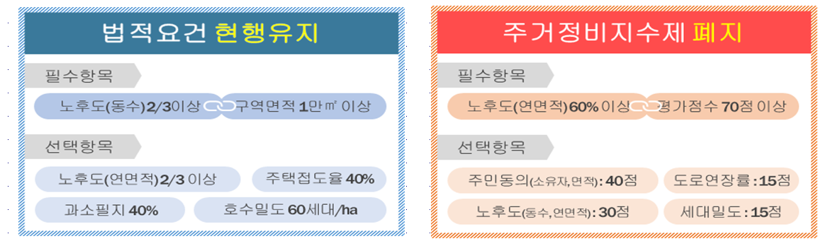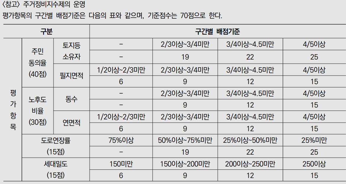 ½Å±Ô Á¤ºñ±¸¿ª ÁöÁ¤À» ÃßÁøÇÒ ½Ã¿¡´Â ´ë»óÁö ¼±Á¤±âÁØÀÎ Áֹε¿ÀÇ, ±¸¿ª¸éÀû, ³ëÈĵµÀÇ ÀÏÁ¤ ¿ä°ÇÀ» ÃæÁ·ÇÑ °æ¿ì¿¡ ÇÑÇÏ¿© ÁÖ°ÅÁ¤ºñÁö¼ö¿¡ µû¸¥ Æò°¡¸¦ ÁøÇàÇÒ ¼ö ÀÖ´Ù.