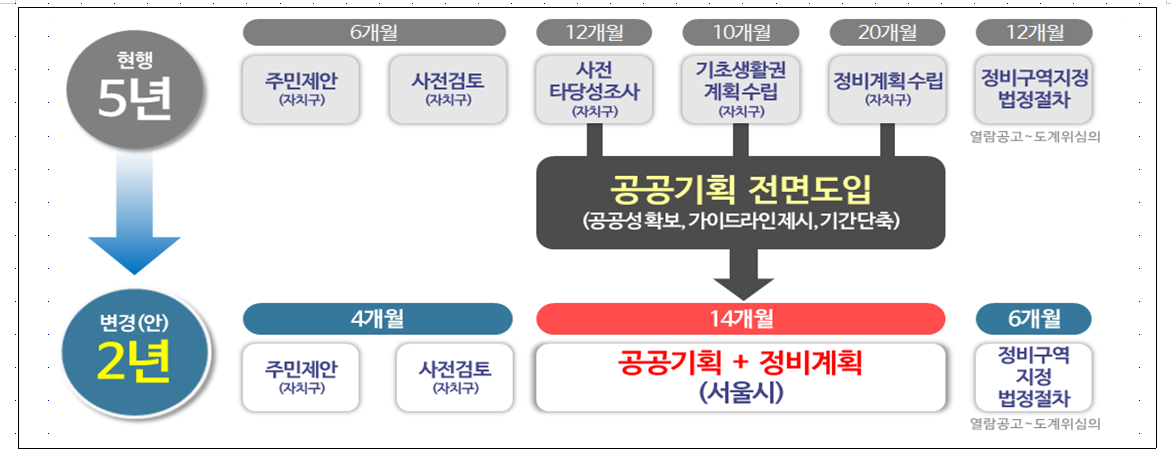 ¡Û »çÀüŸ´ç¼º Á¶»ç ´Ü°è´Â ¡®°ø°ø±âȹ¡¯ µµÀÔÀ¸·Î ÅëÇÕ‧ÆóÁöµÇ´Â ¸¸Å, Áֹε¿ÀÇÀ² È®ÀÎÀýÂ÷¸¦ ±âÁ¸ 3´Ü°è¿¡¼ 2´Ü°è·Î °£¼ÒÈÇÑ´Ù. ´ë½Å, »ç¾÷ Ãʱ⠴ܰèÀÎ ÁÖ¹ÎÁ¦¾È ´Ü°è¿¡¼´Â µ¿ÀÇÀ²À» ±âÁ¸ 10%¿¡¼ 30%·Î ³ô¿© ÁֹΠ°£ °¥µîÀ» ÃÖ¼ÒÈÇÑ´Ù. Á¤ºñ±¸¿ª ÁöÁ¤ ´Ü°è´Â 2/3 ÀÌ»ó µ¿ÀÇÀ²À» ±×´ë·Î À¯ÁöÇÑ´Ù.